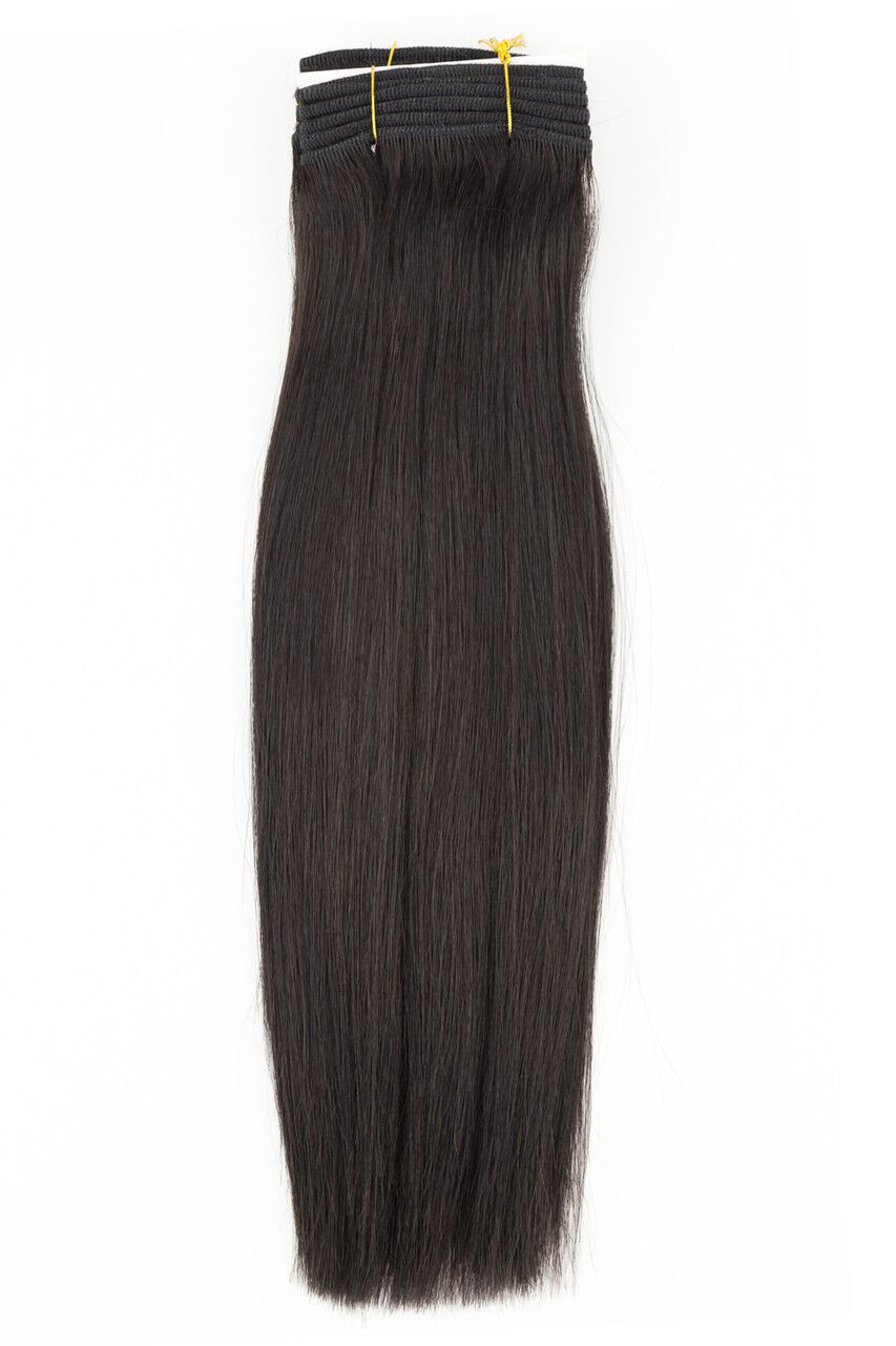 Velvet Yaki offers a distinct, coarse yet natural, straight texture. With their airy touchable feel, these extensions could be worn straight or curled for a range of styling options. Weight: 110-114 grams (4oz) Width: 70”-80” Depending on Length Available Lengths: 10" (25cm) 12" (31cm) 14" (36cm) 16" (41cm) 18" (46cm)