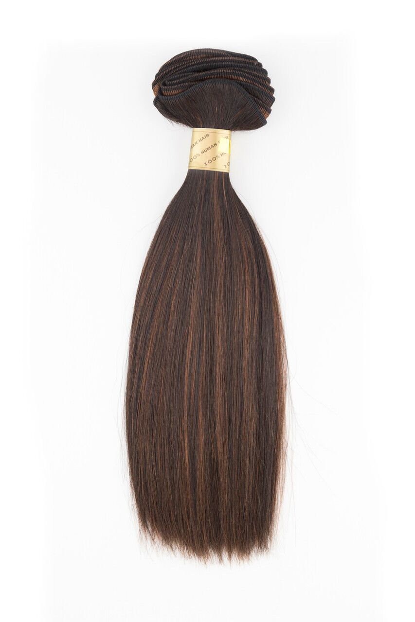 Velvet Yaki offers a distinct, coarse yet natural, straight texture. With their airy touchable feel, these extensions could be worn straight or curled for a range of styling options. Weight: 110-114 grams (4oz) Width: 70”-80” Depending on Length Available Lengths: 10" (25cm) 12" (31cm) 14" (36cm) 16" (41cm) 18" (46cm)