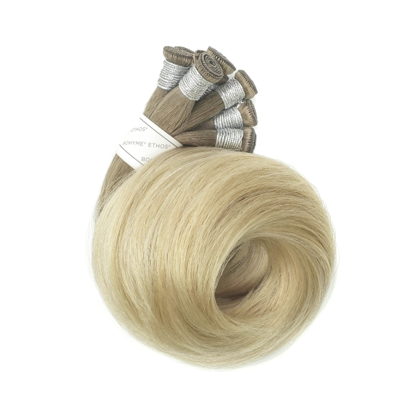 Bohyme Ethos Hand Tied items consist of the highest quality virgin cuticle Remi human hair, which allowed us to create unique, ashy, and platinum colors. Upgrades were also made to the weft itself so that the stitching was clean and thin. We also used organic cotton thread for the weft. Adored by stylists and hair extension lovers, Bohyme’s Body Wave style can be used to create a multitude of looks. With these dreamy waves, every strand is soft to the touch, full of volume and bounce for the most natural look. The light-weight, bouncy and voluminous hair with a loose “S” curl creates a soft, natural look. The style is created through gentle heat technology without the use of any chemicals. The wide range of ashy | platinum tones available in the Bohyme Ethos collection is made possible due to the high-grade Remi® hair quality used and the gentle 40-day extended color bath.
