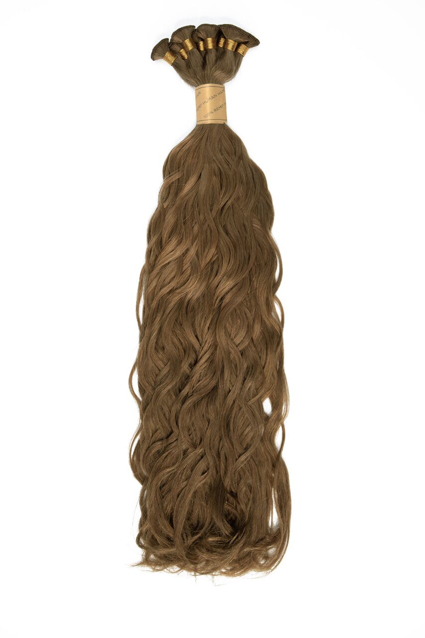 Hand-tied wefts will not cause lumps at the crown or stick out from the regrowth of one’s natural hair. Each 10-12 inch weft is designed to be folded over itself at the ends instead of trimmed. Trimming the weft will cause the weft to unravel or shed. Bohyme Hand-Tied wefts can be heat styled and is ultra lightweight - allowing for multiple wefts to be layered for multi-dimension color blending without damage to one’s natural hair. The weft is durable, long-lasting, and less visible on the scalp. Revered for only selling strands that are true-to-length, from root to tip - Bohyme Hand-Tied Hair is immediately identifiable by feel and appearance. These hand-tied wefts are composed of micro-fine, flat wefts that lay discreetly against the scalp. Thinner and lighter than machine-tied hair, hand-tied wefts are the most undetectable and comfortable extensions available. The hair lays flatter against the scalp and can be re-used. Each weft is handcrafted using only the healthiest hair and offers the largest spectrum of natural human hair colors, lengths and textures in the industry. Bohyme Hand-Tied wefts can be installed using a variety of application methods including micro-rings and sew-ins. Because Hand-tied wefts are ultra thin, they can be stacked and layered in one row and lay close to the scalp. It is crucial to know that Hand-Tied wefts should never be cut during installations as they will unravel. Weft Lengths: 14” - 10 Bundles (Each weft in the bundle is 10” - 12” long) 18” - 8 Bundles (Each weft in the bundle is 10” - 12” long) 22” - 6 Bundles (Each weft in the bundle is 10” - 12” long) 24” - 6 Bundles (Each weft in the bundle is 10” - 12” long)
